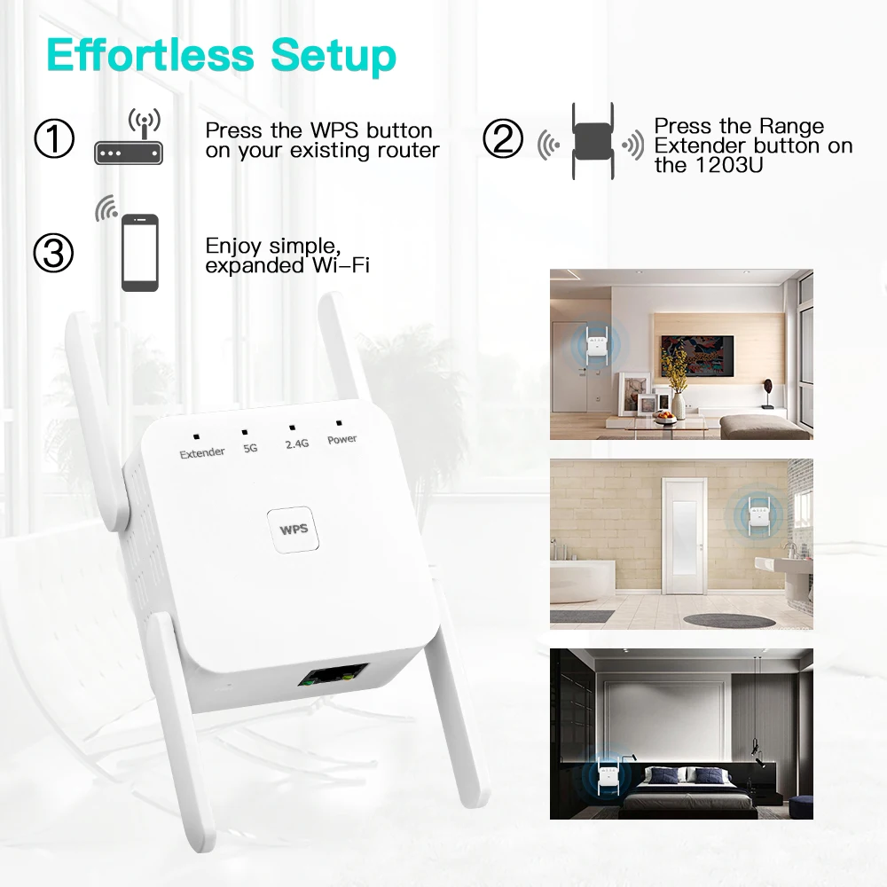 5 Ghz WiFi Repeater Wireless Wifi Extender 1200Mbps Wi-Fi Amplifier 300Mbps Long Range Wi fi Signal Booster 2.4G Wifi Repiter