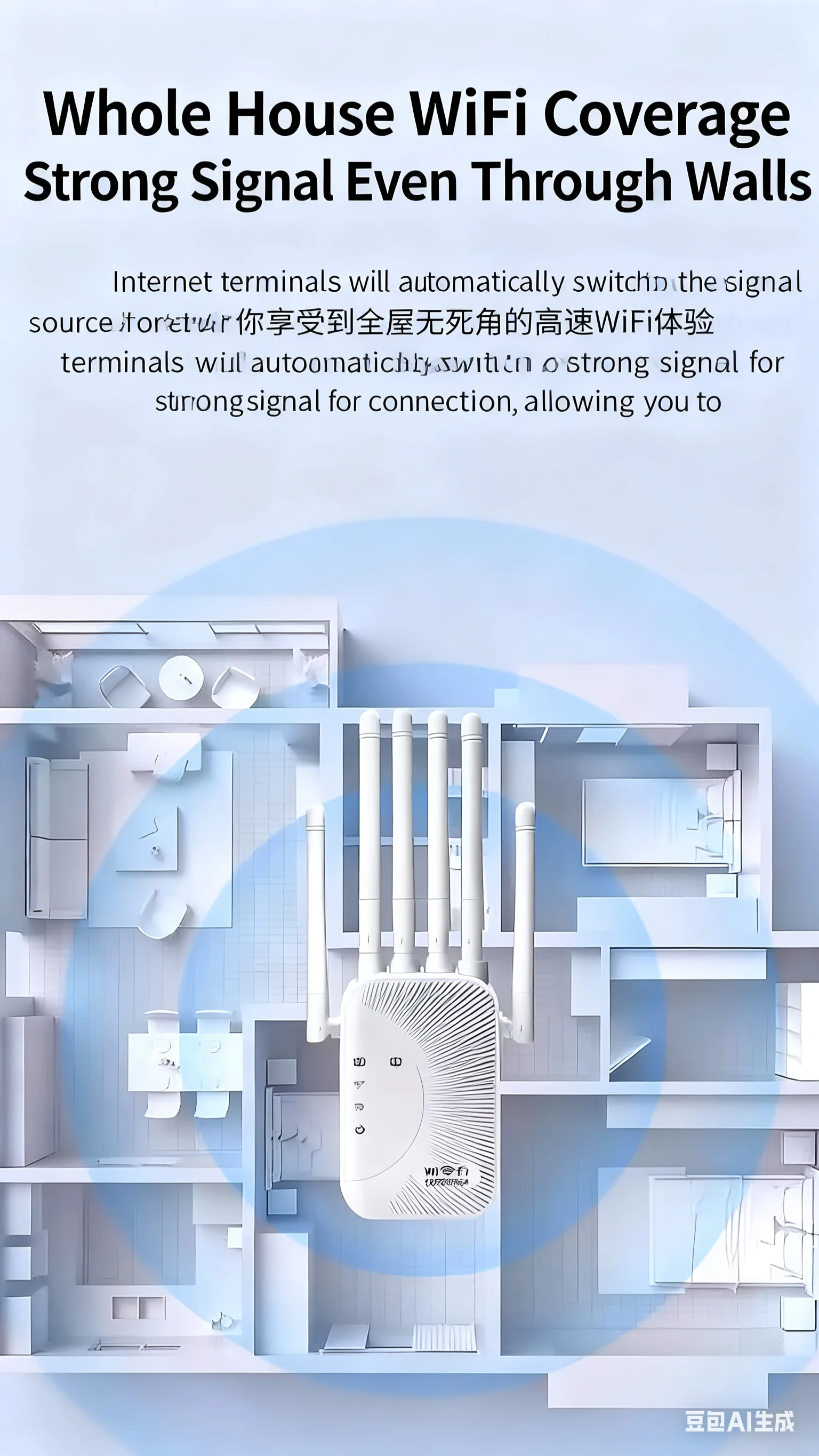 Expand dual band signal, allowing 2.4GHz and 5GHz signals to spread left and right, covering every corner of the home!
