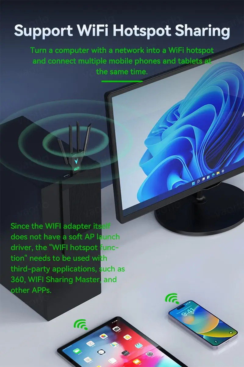 • Dual-Band Support :This Wi-Fi dongle USB3.0 supports both 2.4G and 5G frequencies, providing extensive network coverage and stability.