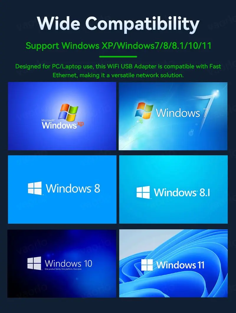 6.Wide Compatibility,Designed for PC/Laptop use, this wireless receiver is compatible with Fast Ethernet, making it a versatile network solution.