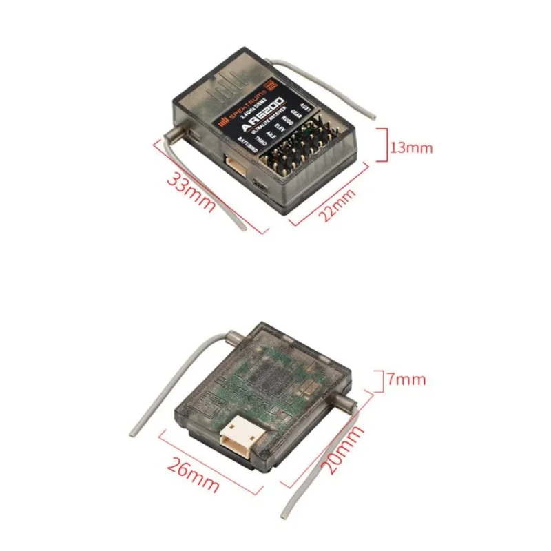 Dsm2 ar6200 6 channel receiver is a great solution for all models of the aircraft, requires a full set of up to 6 channels. This dualink receives the information from the collection, while the two receiver is processed in the form of a combination of patented Specktrum software, which in the most vivid description of a RF signal. This dual path redundancy, coupled with the fact that each of the two receivers are located in a slightly different location exposes each of the different RF environments, and creates a bullet proof RF connection in all conditions.