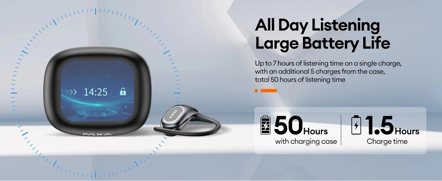 [Long Battery Life]:Up to 13 hours of listening time on a single charge, with an additional 5 charges from the case, total 60 hours of listening time