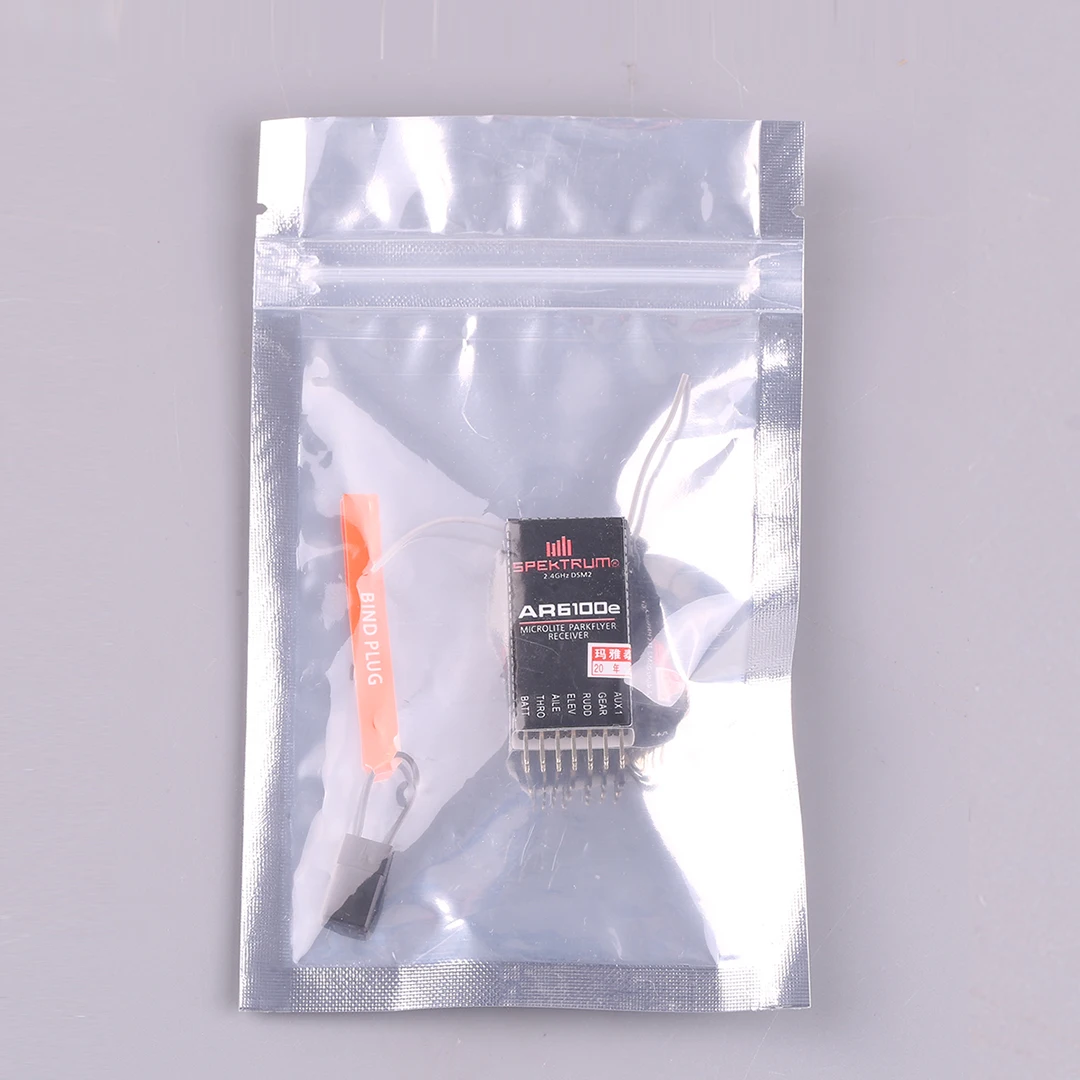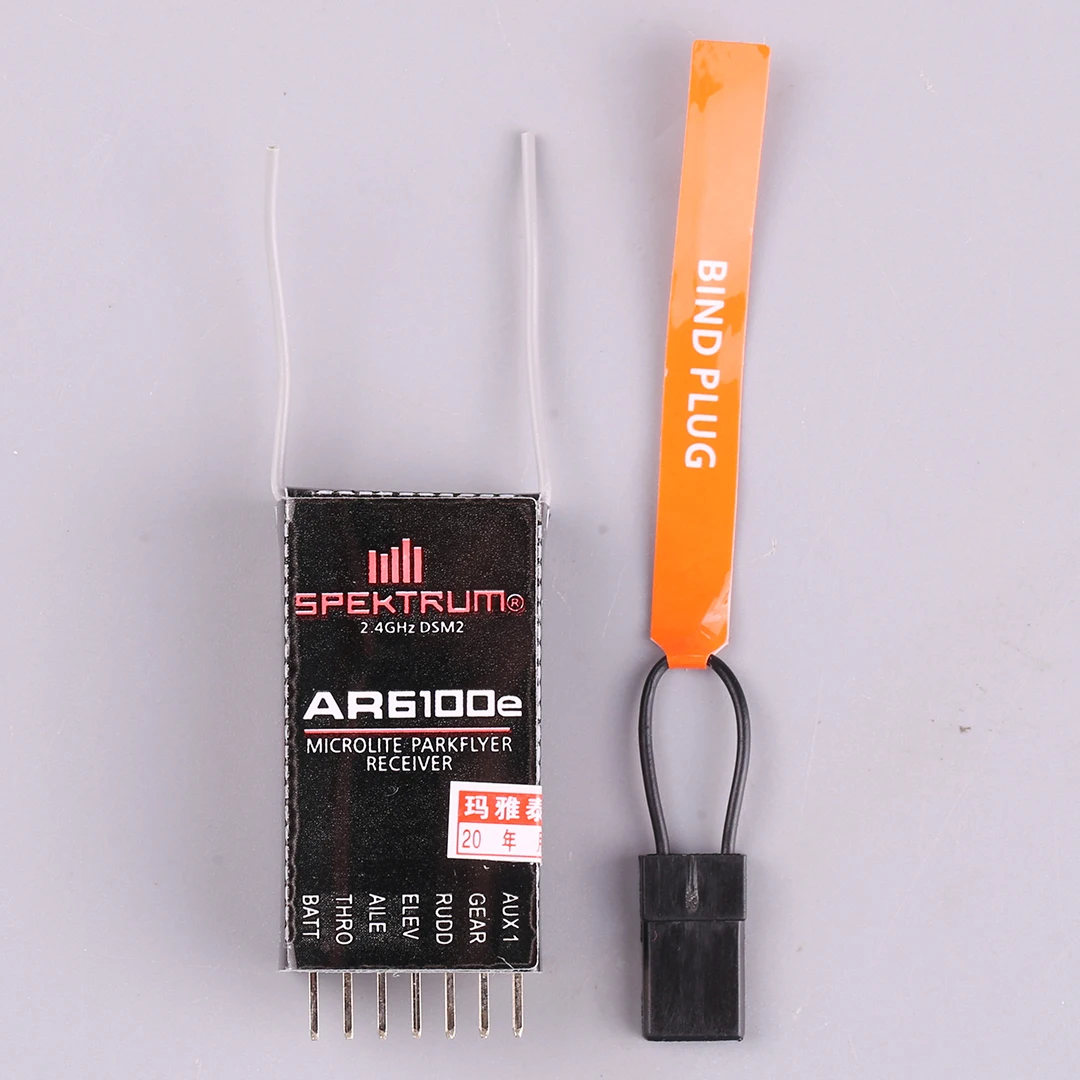 At only 4.4 grams and 19.0mm x 30.0mm x 9.0mm (WxLxH), the AR6100E is the ultimate 2.4GHz receiver for most any small electric model from mini profile foamies to 400 class helis. Because it uses advanced DSM2? technology, it is only compatible with DSM2 aircraft radio and module systems. It also boasts a wide input range that allows it to operate with 3.5- to 9-volt electrical systems.