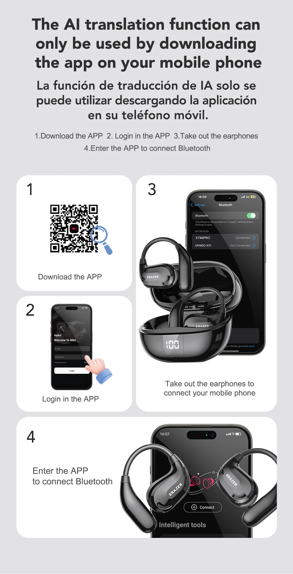 10.The collision of tradition and the new era, equipped with the latest Al technology, with 150 languages, real-time online translation,Dual HeadphonesTranslation.