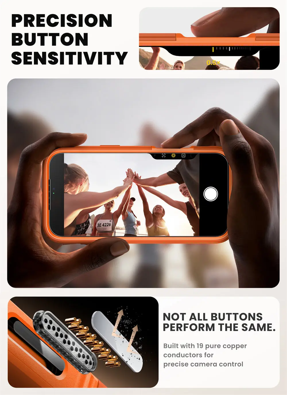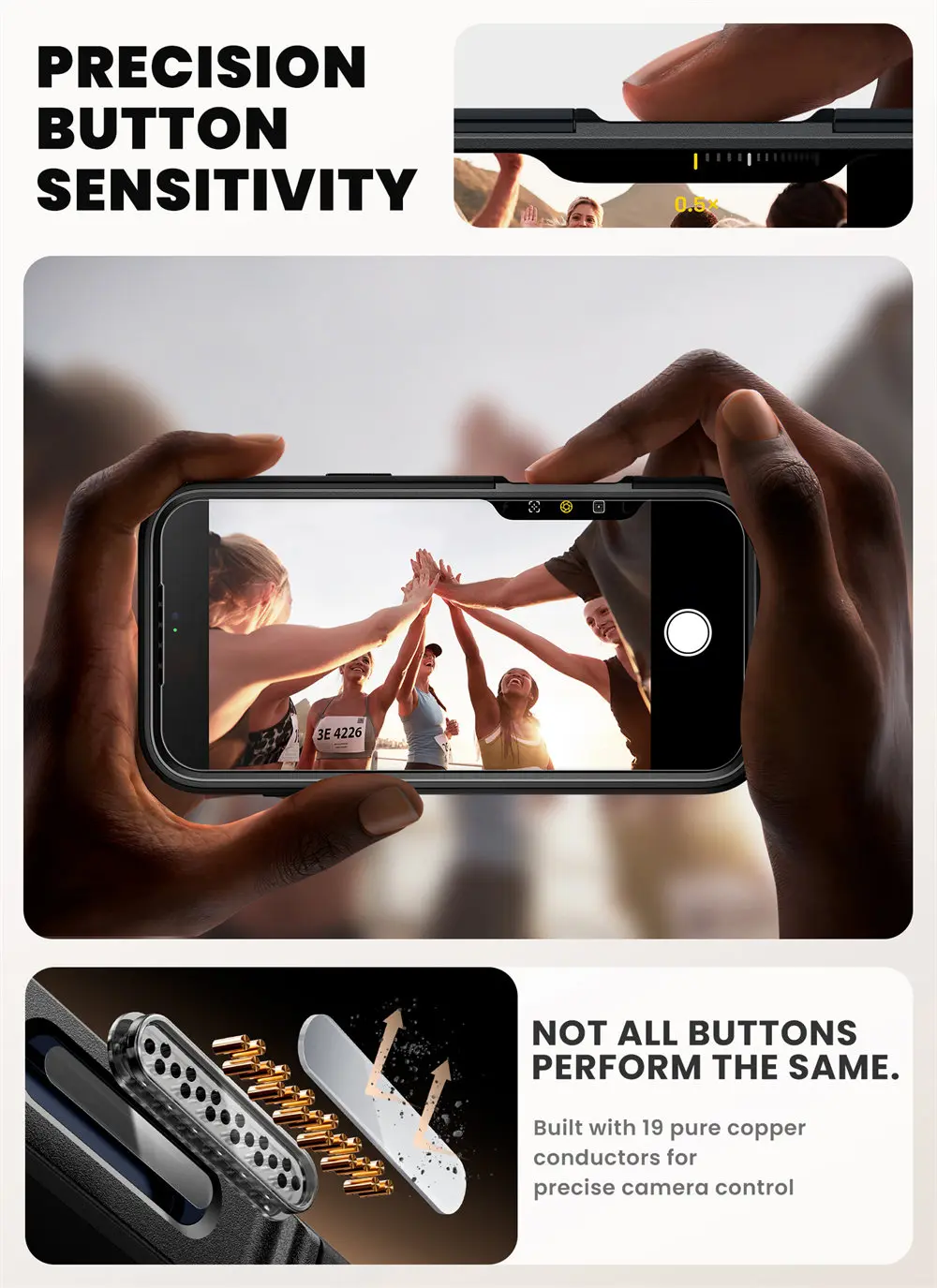 [Camera Capture Button Cover] The built-in camera control button is precisely engineered with 19 pure copper conductors, seamlessly replicating the Phone's button functionality for an improved user experience.