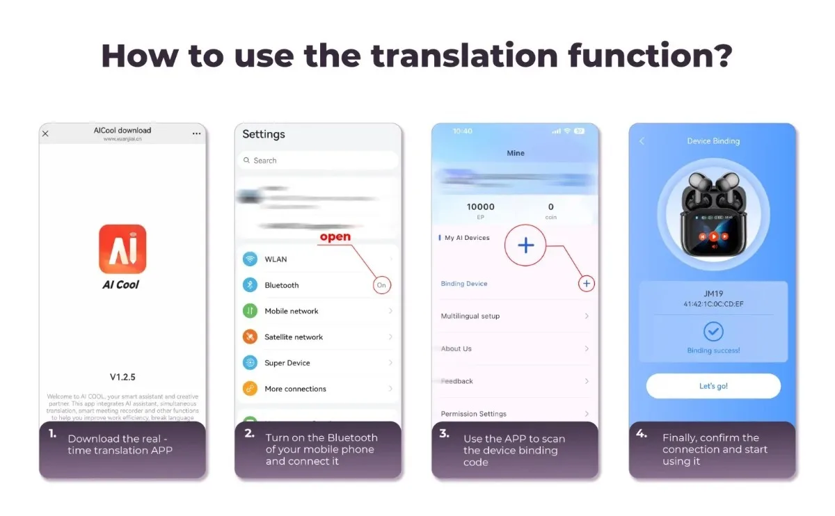 ●Yes, the packaging list contains user manuals and device binding codes for AI translation. Follow the manual instructions, download the application and scan the bound device.