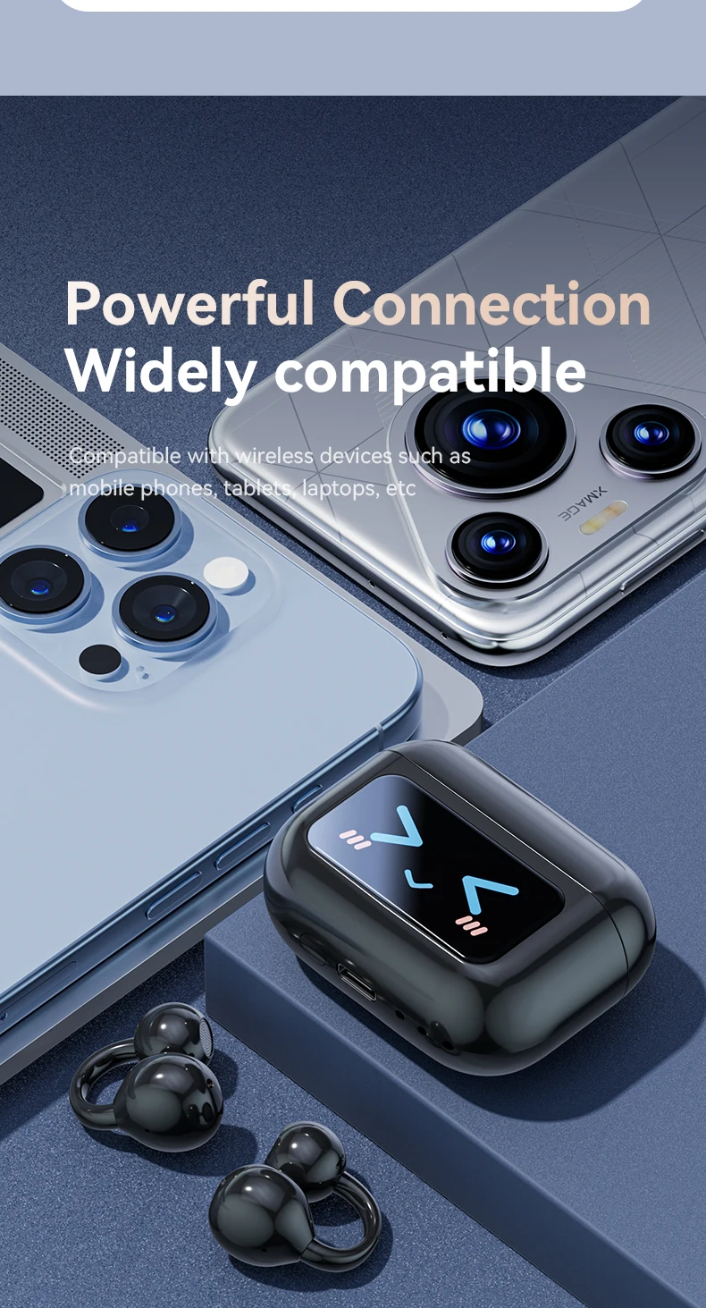 • Large Battery&Long-Lasting Power: The earphones come with a battery capacity of 30mAh each, while the charging case has a capacity of 500mAh. This combination ensures long-term, uninterrupted use,making them ideal for extended periods of listening or travel.